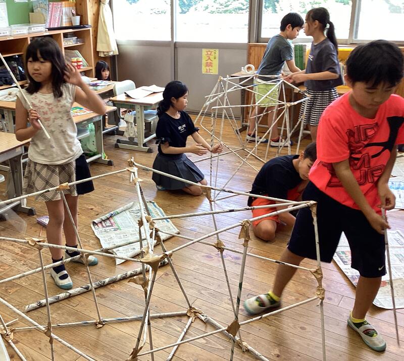 7年生です。新聞紙を丸めて鳥を作っています☆