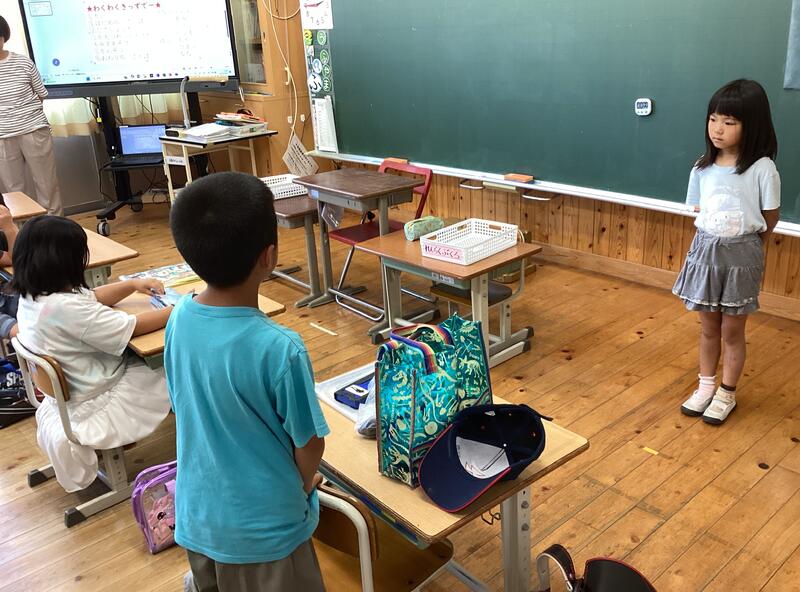 最後は1年生の帰りのあいさつです。元気いっぱいに声を出し、深々とおじきをして、「さようなら」です☆