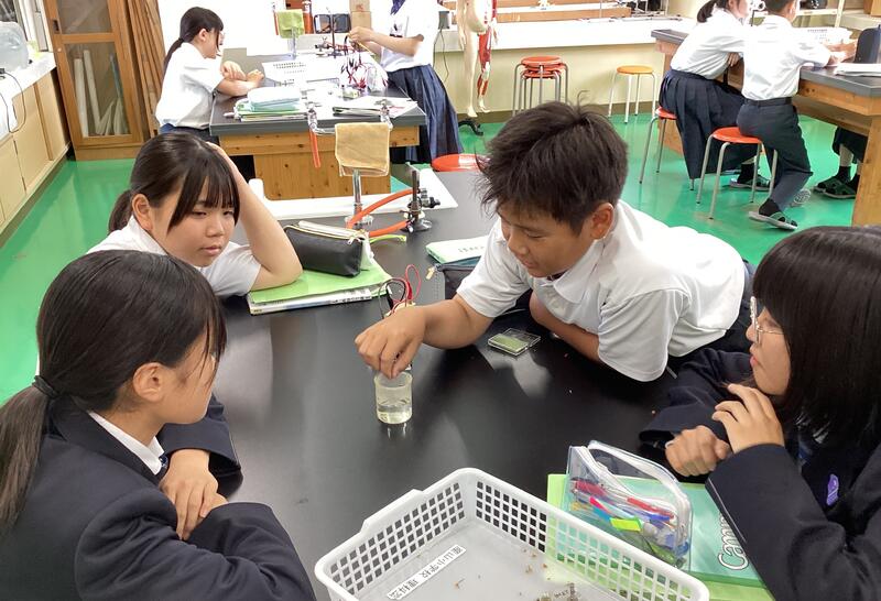 明日から2泊3日の修学旅行を控える8年生。理科の実験を行っています☆