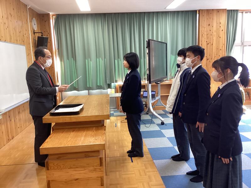 まず、田中スポーツ店杯バドミントン大会と阿蘇郡市中学校作曲コンクールの表彰が行われました☆