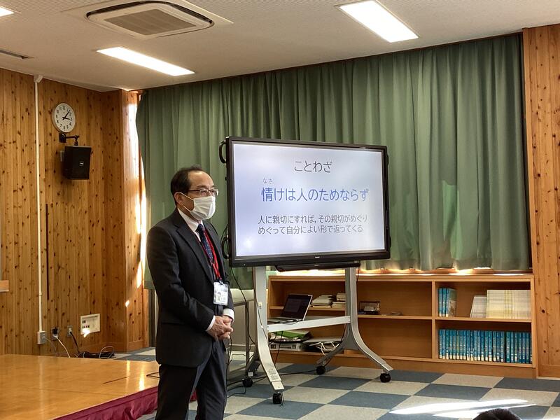 校長先生の講話です。ブログのタイトルにある「情けは人のためならず」 (ことわざ)