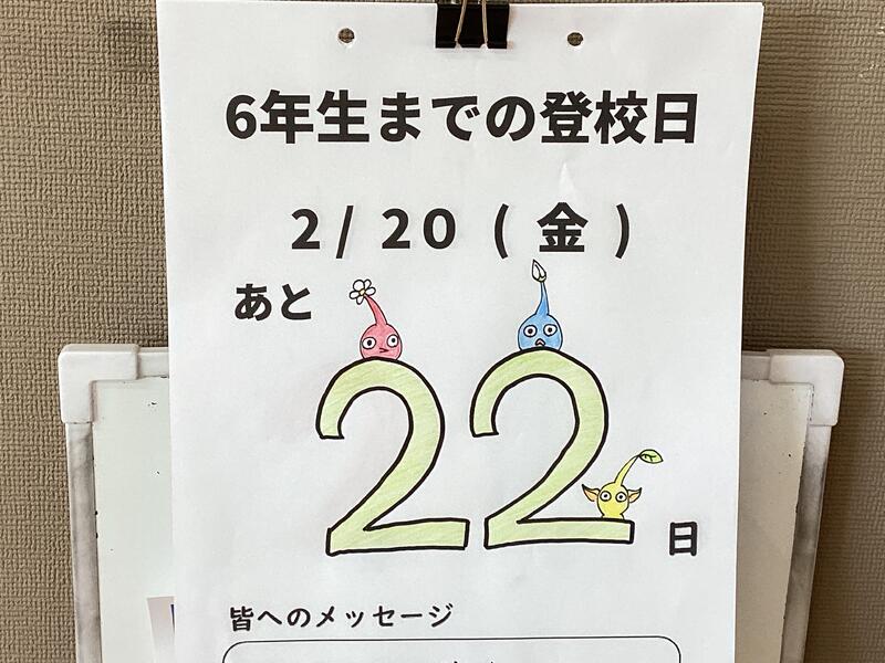 さて、本日の授業等の様子です。5年生の教室にも6年生に向けたカウントダウンが始まりました☆
