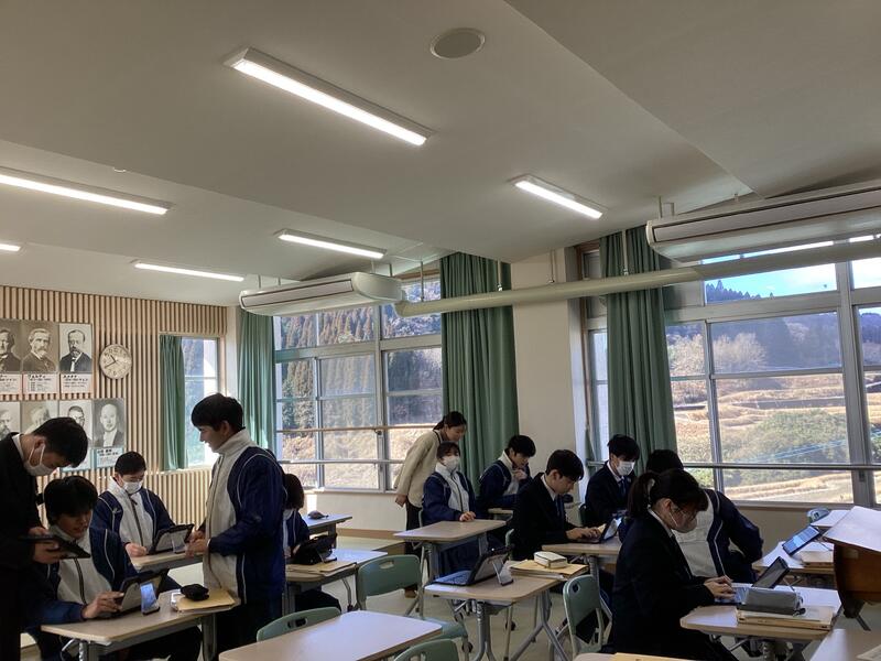 9年生の音楽の授業です。卒業式の歌の練習が始まったようです☆