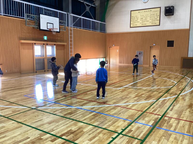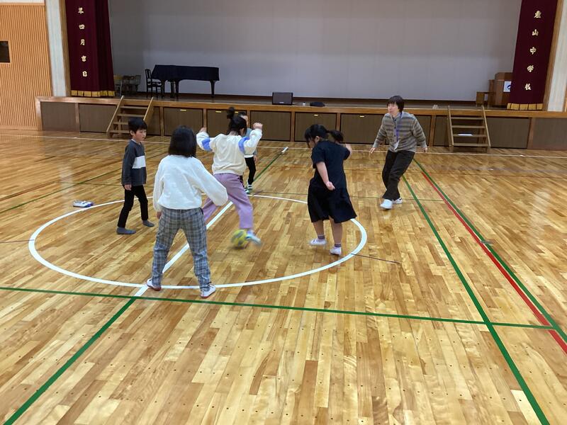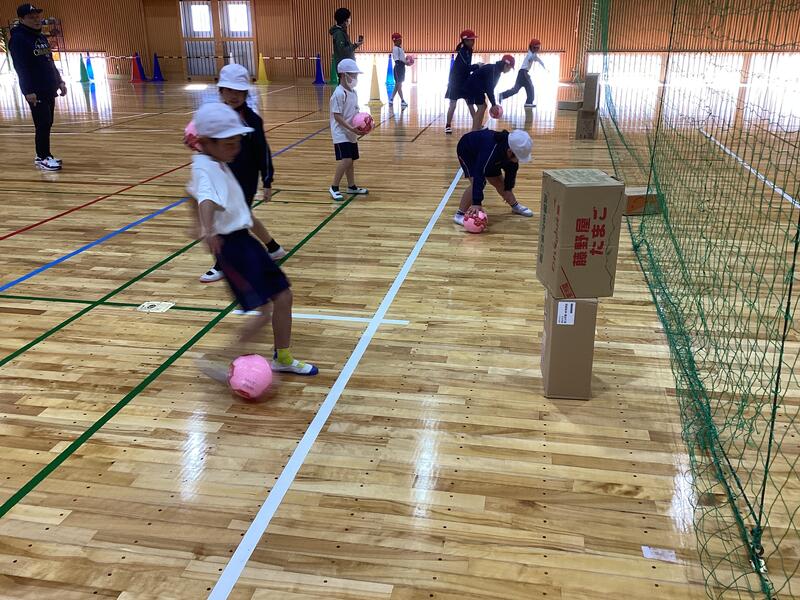 体育館が賑やかでした。先生と一緒に遊ぶ1~3年生です☆