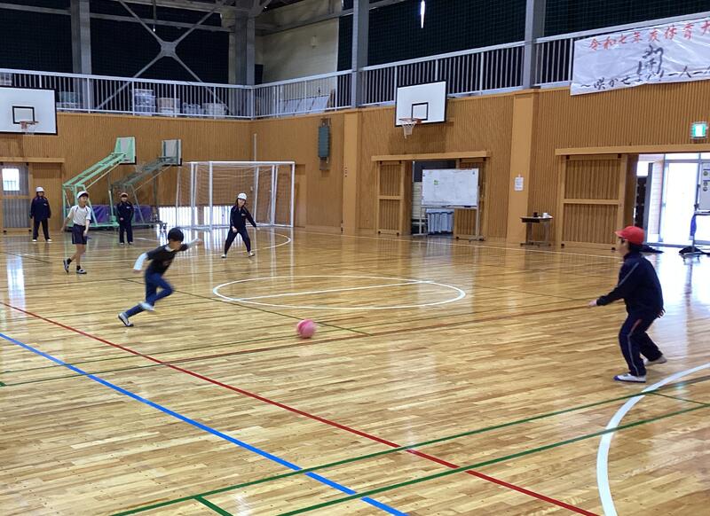 最後は4年生の体育です。体育館でゴール型ゲーム(サッカー)に取り組んでいます☆