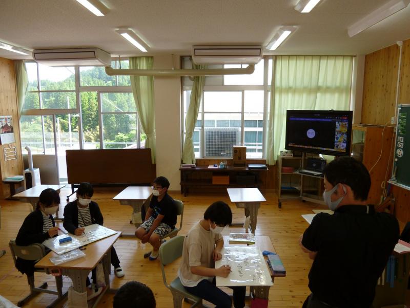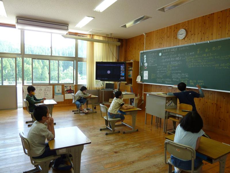 1・2年生は子供たちが企画したお楽しみ会、5年生は家庭科のテスト、6年生は面積の公式の復習、8年生は歴史のまとめをしていました。
