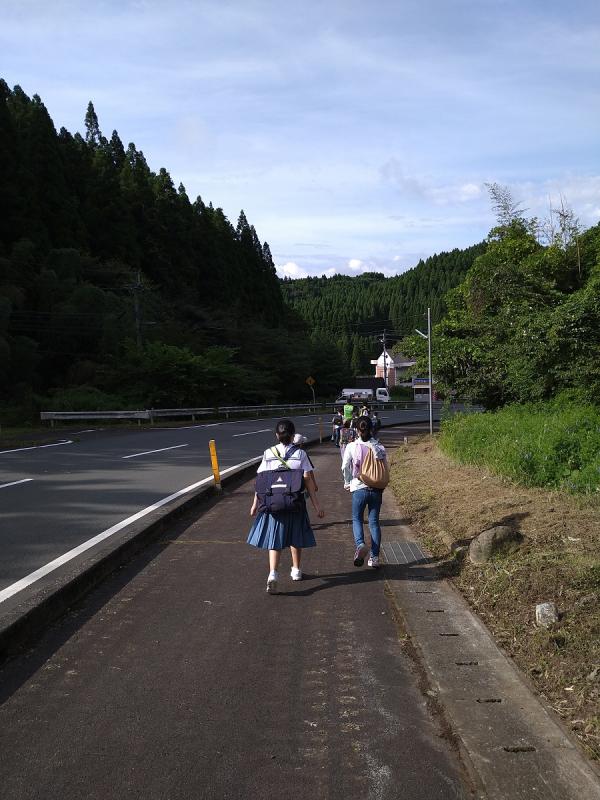 1学期後半のスタートに合わせて、南谷方面の通学路の除草作業を行っていただきました。