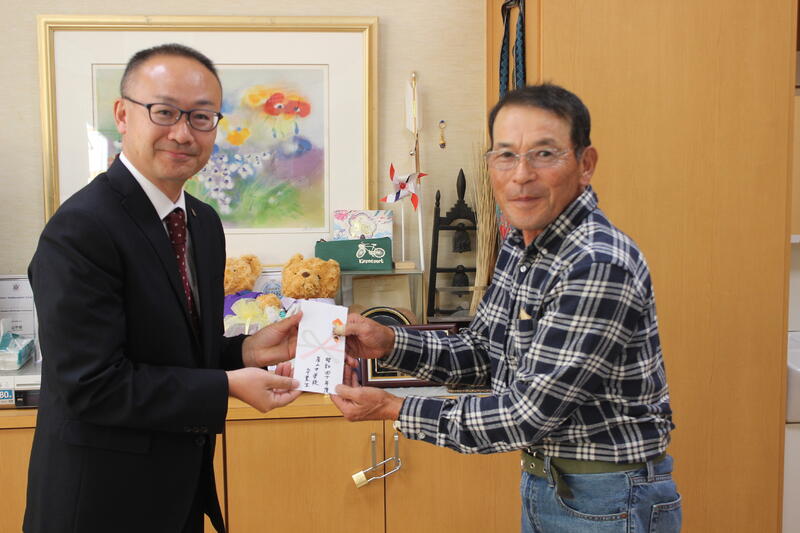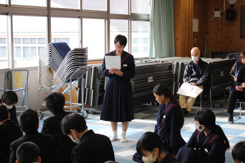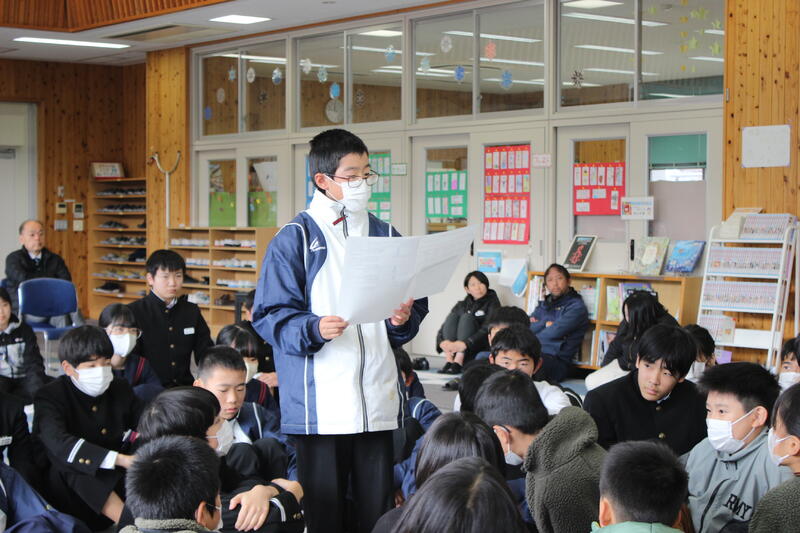 12月、産山村人権教育講演会の講師として新本さんを招いたとき、9年生へ卒業式にケーキを送ると約束されました。