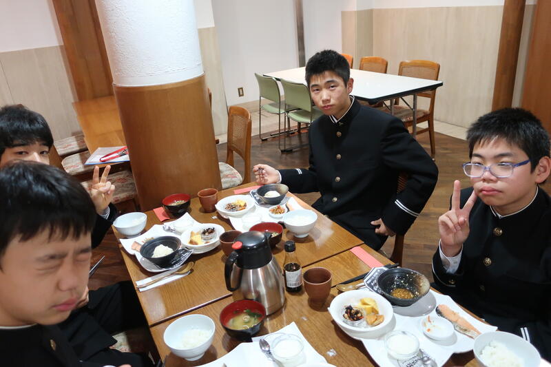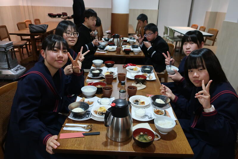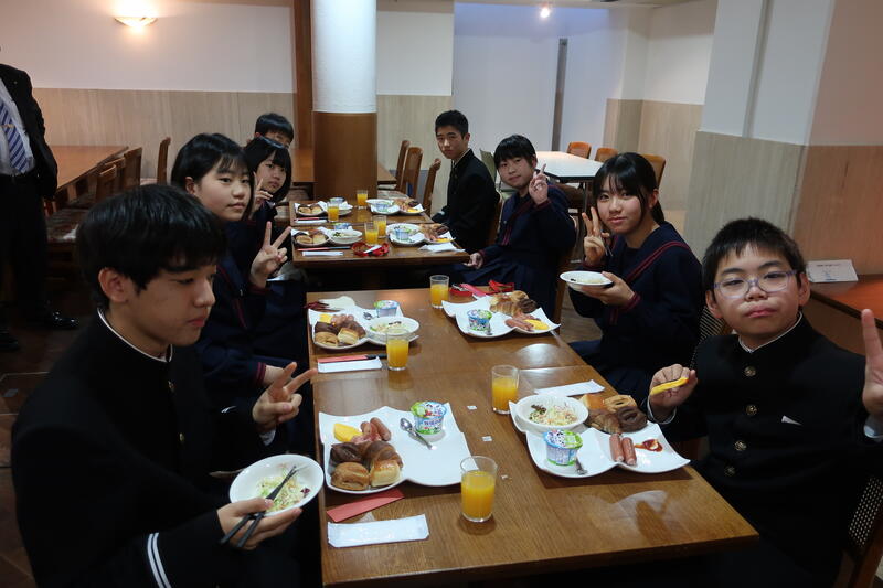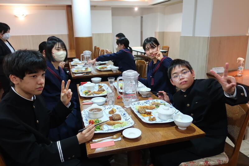 3月7日(木)、9年生(中学3年生)が阿蘇市内のレストランで開催されたテーブルマナー教室に参加しました。メニューは、産山産の食材をふんだんに使用したフランス料理です。