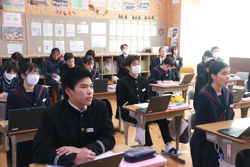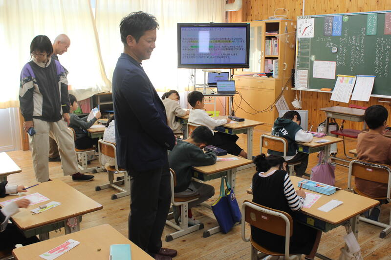 先生は、電子黒板や黒板で説明されました。これまでの指導法とICT機器を活用したこれからの指導のよさを柔軟に活用されていました。