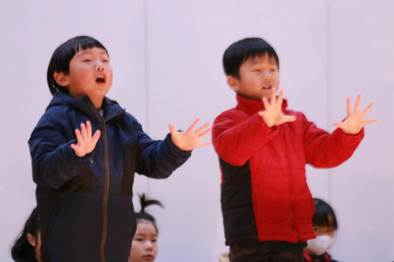 ユーモアを交えながらも、一人一人の言葉の発音等を講師の先生にチェックしていただいています☆