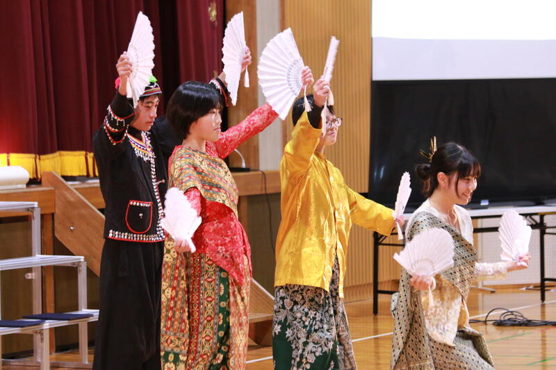次にタイダンスをしました。タイの南の方のダンスです。独特なステップに混乱しながらも、真剣な眼差しで踊っていました。22日にタイダンスの発表があります。