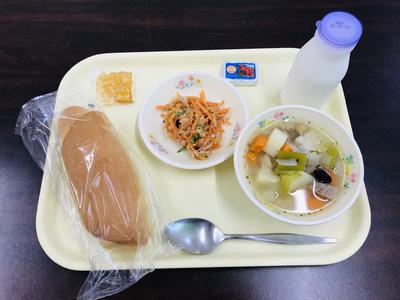 コッペパン・りんごジャム 牛乳 カウル にんじんサラダ チーズ