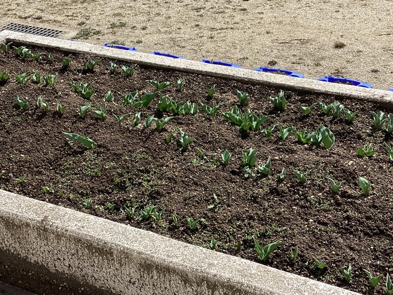 先日紹介した1~2年生の花壇のチューリップの芽も、ご覧のとおりどんどん大きく伸びています☆