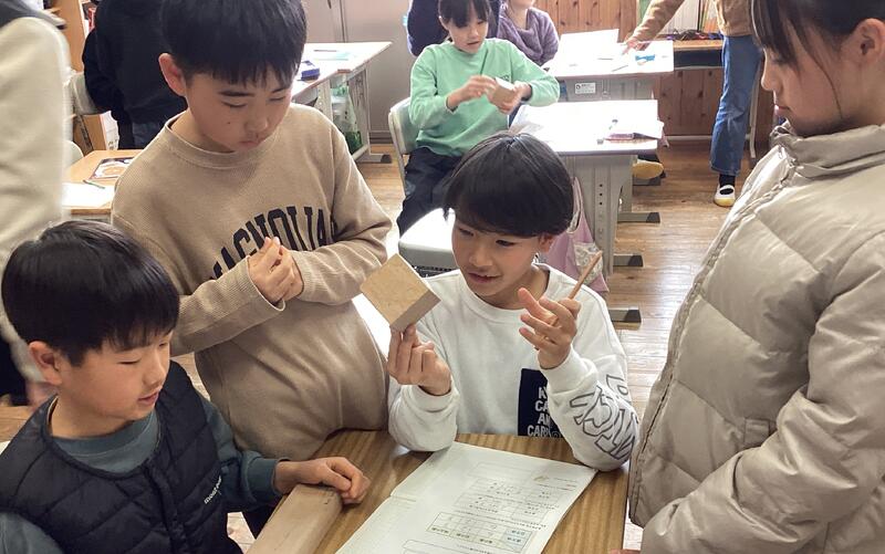 4年生の算数です。直方体と立方体のつくりをグループで調べているようです☆