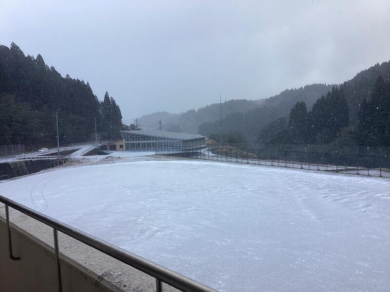 前日の天気予報のとおり、産山は朝から厳しい寒さで、うっすらと雪景色となりました・・・