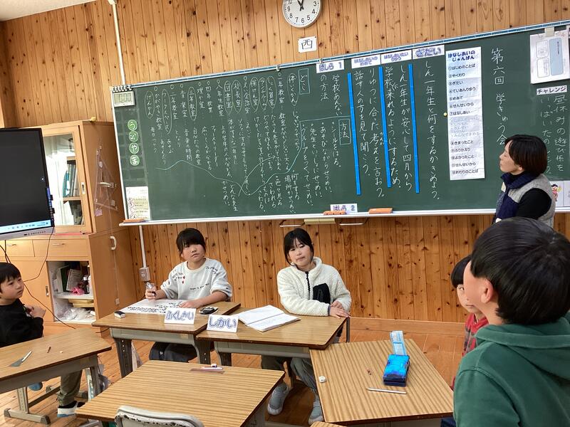 またまた3年生です。「学級会」で新1年生の体験入学時に、学校案内をどのように行うかを話し合っています。