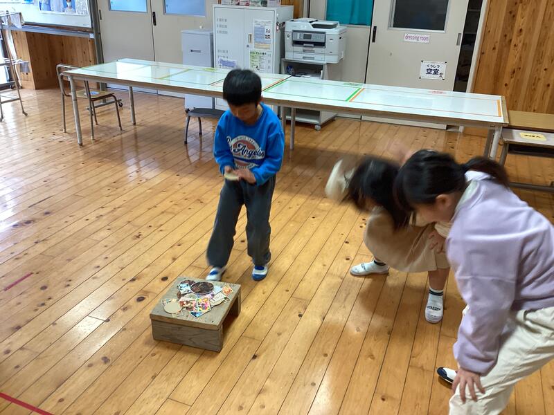 さて、本日(5日:木曜)は1~2年生が生活科の学習で昔遊び体験を行いました☆
