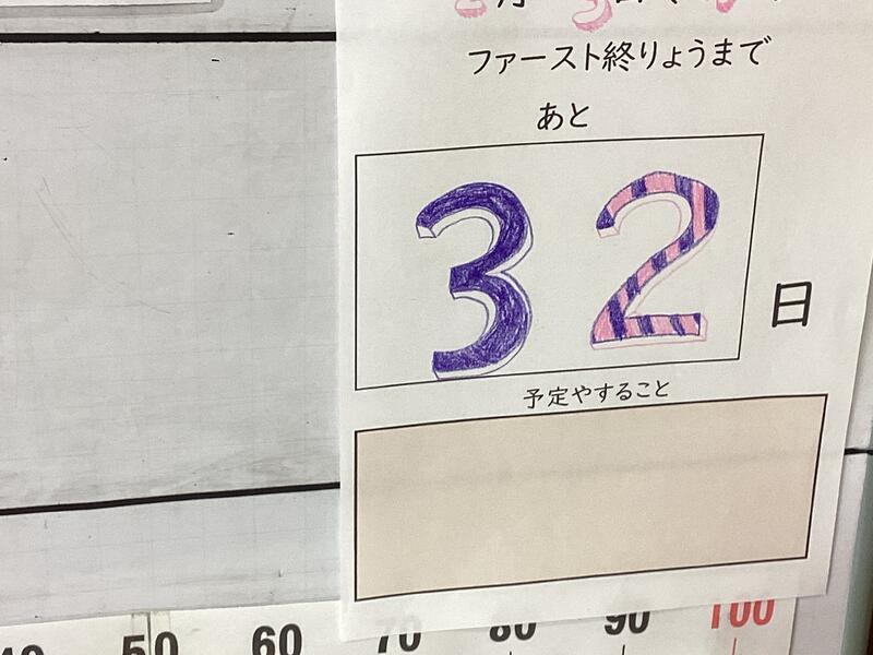 さて、他の話題をご紹介します。まずは4年生の教室です。4年生は1stステージの最終学年です。終了までのカウントダウンが始まりました☆