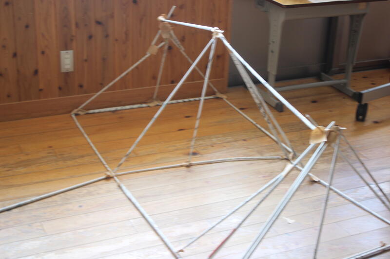 実は4年生が図工の学習「つなぐんぐん」で新聞の棒をつなぎあわせて作ったもので、4年教室に飾られていました☆