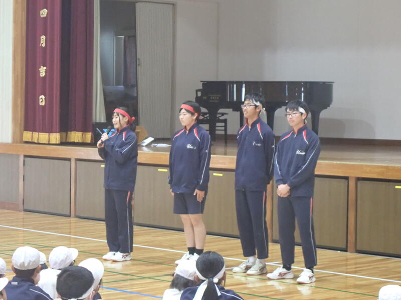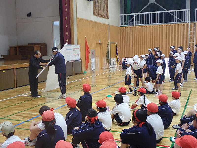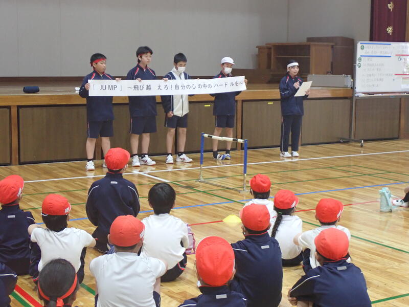 産山学園校区体育大会の結団式を行いました。生活体育委員会から体育大会のスローガン「JUMP~飛び越えろ!自分の心の中のハードルを~」が発表されました。「自分の心のハードルを自身で決め、それを飛び越えるために今日何ができるかを考えながら練習に励んでほしい。そして、皆さんがそれぞれ設定したハードルを越えられるような体育大会を目指してほしい。」という願いが込められていました。その後、両団団長から力強い決意表明があり、団ごとに応援練習を行いました。5月16日(土)の体育大会の大成功に向けて、スローガンをしっかり意識して頑張りましょう