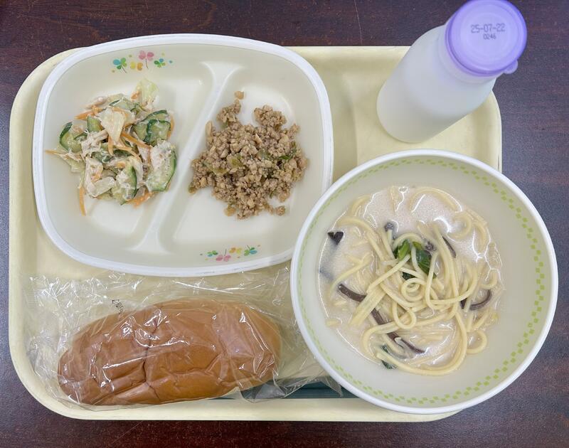 ミルクパン、牛乳、タンタン麺、バンバンジーサラダです。