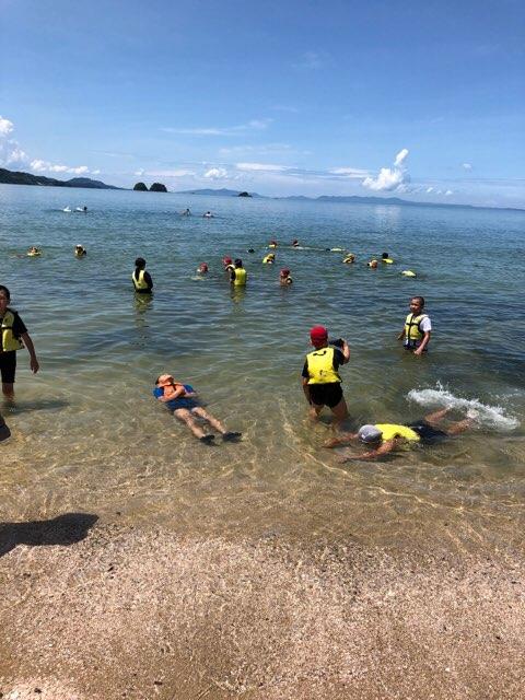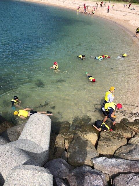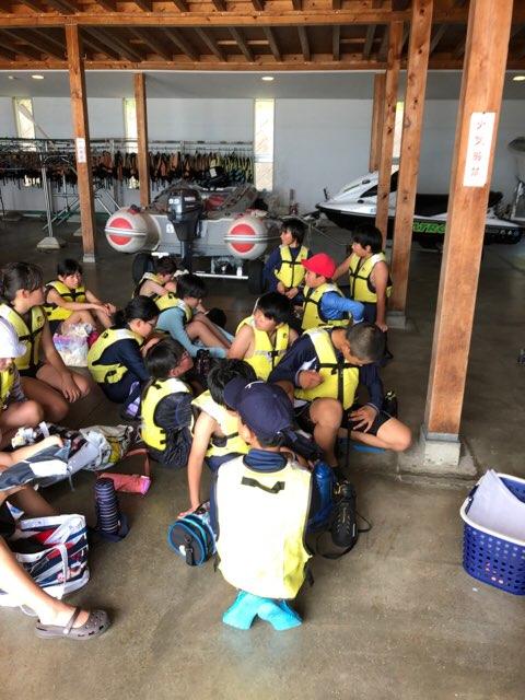 元気に2日目の活動を開始しました。朝の集いから始まり、朝食、掃除、マリン活動となります。今日は快晴。暑くなりました。クマゼミの鳴き声がたくさん聞こえてきます。