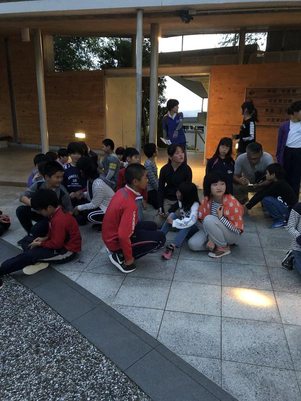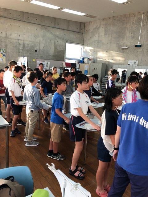 5年生が合流し、合同の活動が始まりました。夕日がきれいな海が良く見える食堂で、お腹いっぱい夕食を食べ、その後はナイトゲームを行いました。班長会議の後、消灯です。ぐっすり眠れそうでしょうか?