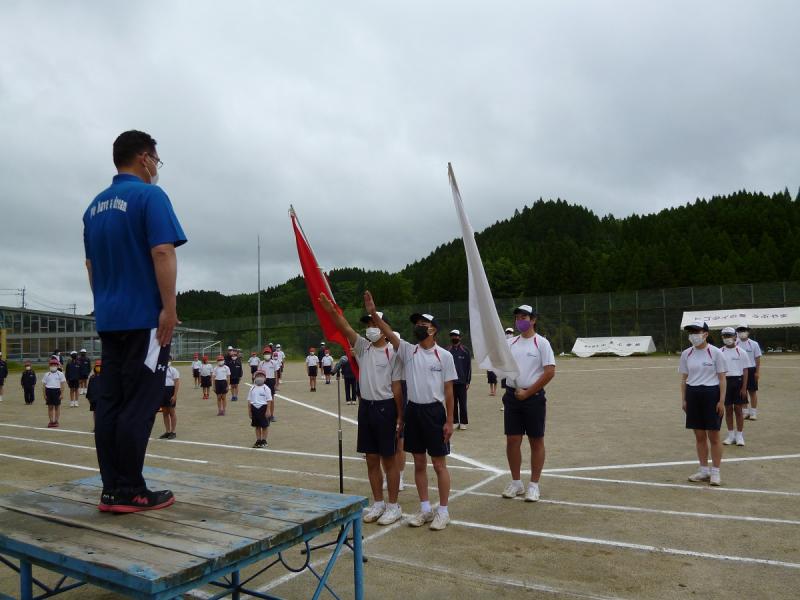 今朝は天候が一時的に回復したため、運動場で予定どおり予行演習を行いました。