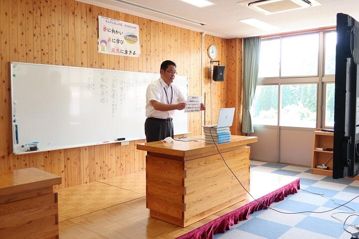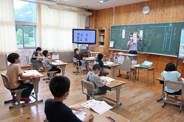 学園生の長期休業期間中の学習をサポートする村教育委員会主催の取組である夢塾(地域未来塾)が、本日、夏休み初日からスタートしました。夢塾は、前期生が午前(10~12時)、後期生が午後(13~15時)とに分かれて行われます。講師は、教育委員会の笹原指導主事と有住指導主事で、例年であれば、大学生の学習支援ボランティアも参加しておりました。令和3年度はコロナ禍が続いておりますので、基本お二人の先生方を中心に、手伝えるスタッフがサポートに入る形で進めていきます。初日の今日は、児童クラブの先生方や教育委員会の森本さんの姿がありました。そして、星山教育長先生も指導に入られていました。