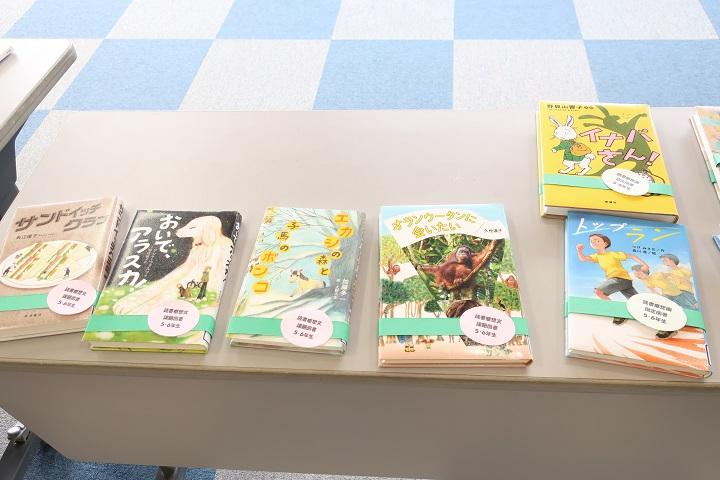 テーブルに並べられた本は、長期休業中にじっくり読んでほしい本ばかりです。