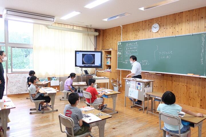 また、3年生は習字の清書、4年生は夏の星座を学習していました。