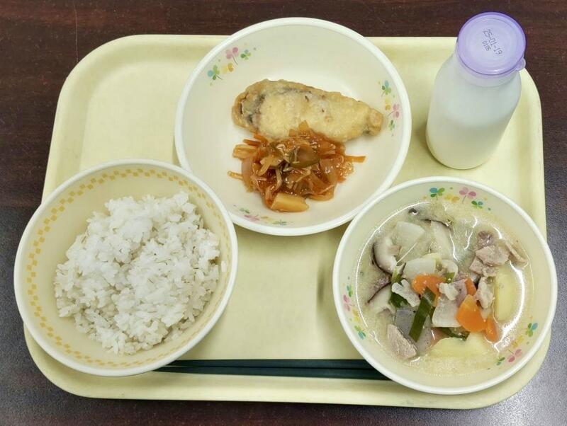 麦ごはん、牛乳、魚の甘酢あんかけ、豚汁です。