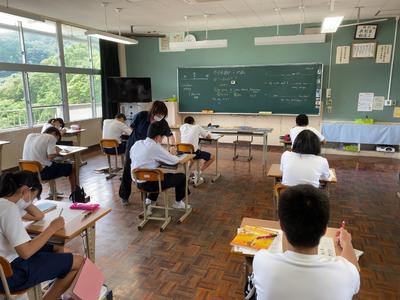 授業の様子は、1年社会、2年英語・音楽、3年数学の様子です。