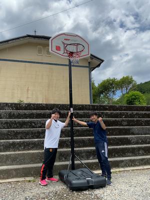 1 まず、マツヤスポーツさんがバスケゴールを設置してくださいました。