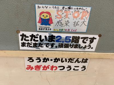 あまび笑さまが校内いたるところで、コロナ退治に活躍されています。