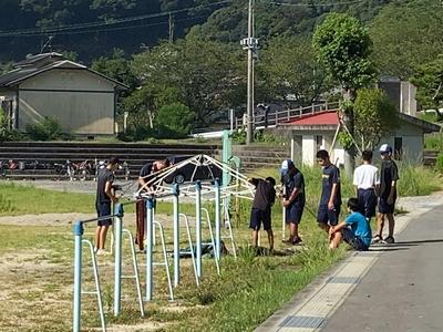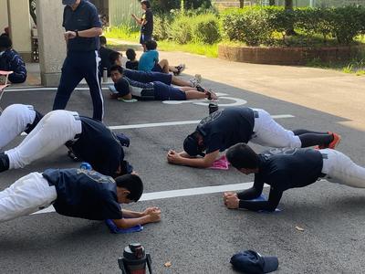 今朝の部活動の様子です。こまめに休憩を取り、水分補給をしています。