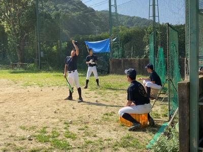 熱中症予防運動指針を参考に、日陰や風のあるところでできる練習に切り替えました。