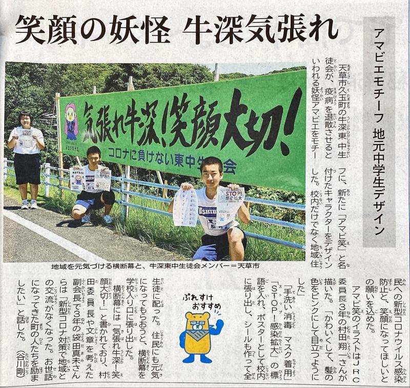 本校公認コロナウイルス感染拡大防止キャラクター「あまび笑さま」と