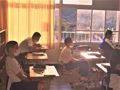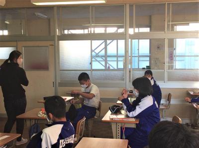 今日もぽかぽか陽気の牛深東中6時間目の様子です。