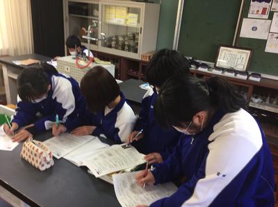 1年生の理科では、音の性質の復習プリントに取り組んでいます。