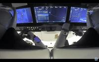 また、これは国際宇宙ステーションへのドッキングを前に、新型宇宙船クルードラゴンの内部でパネルを操作するクルーたちです。(NASAテレビから)
