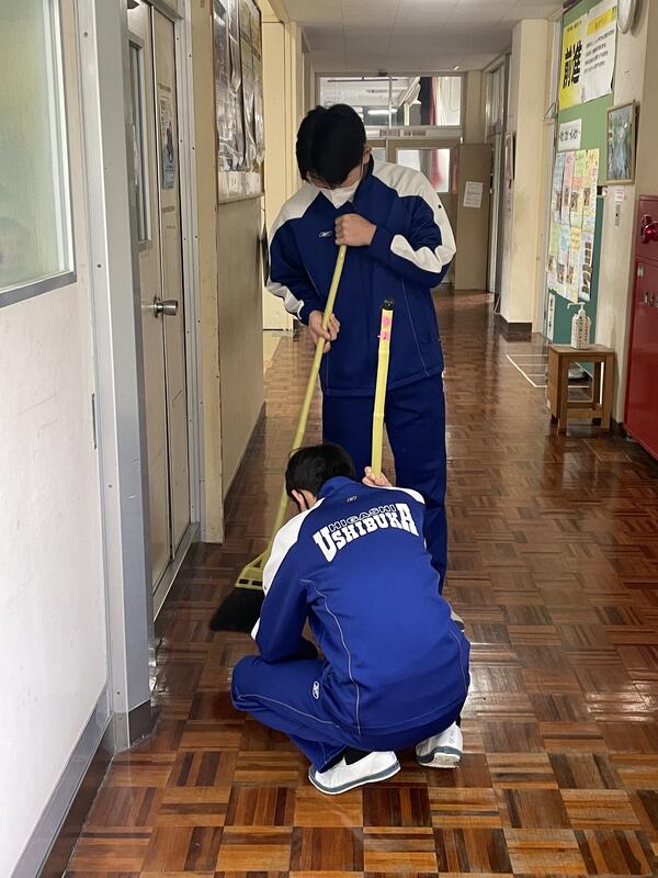 牛深東中は、東輪会という縦割りの班で掃除を行っています。