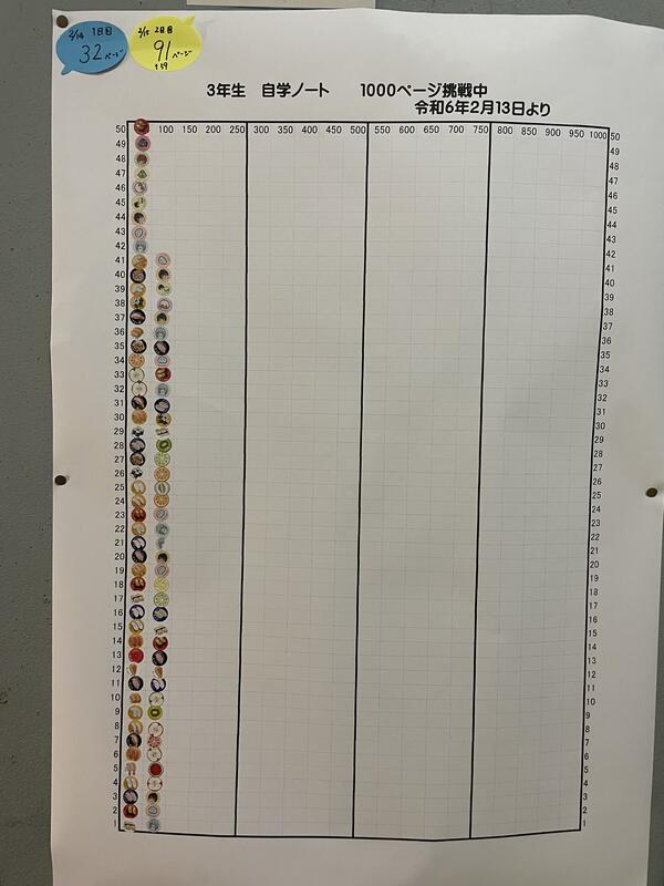 まだシールを貼っていない生徒もいるのですが、だいたい一人一日で2~3ページ頑張っています。