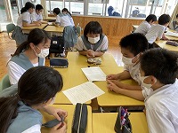 6/19(金)に生徒総会資料を使って、学級討議を行いました。写真は2年生ですが、全クラス学級討議を行っています。これからは生徒会執行部と専門委員長が各クラスからの意見要望をとりまとめ、紙上で回答をする予定です。