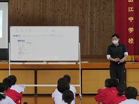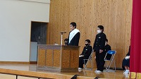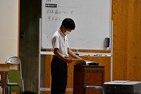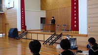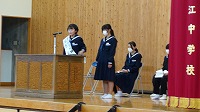 人権委員長から今年度の山江中人権テーマの発表と校長先生から人権に関する「想像力の大切さ」についての話がありました。