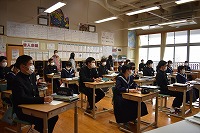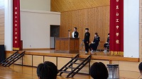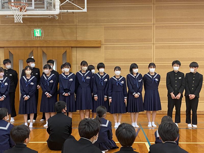 午前中の卒業式練習が終わり、5時間目に3年生は修了式を行いました。生徒代表2人が中学校での思い出とこれからの目標について発表をしました。明後日がいよいよ卒業式になります。