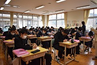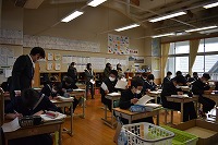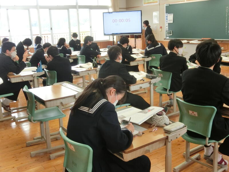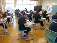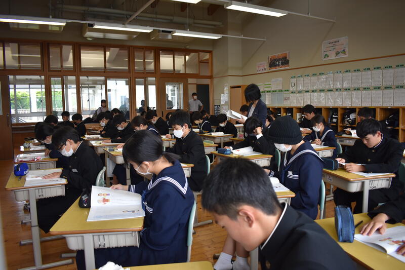 全国的な学力調査ということもあり、3年生は真剣な眼差しで試験に臨んでいました。「試験」や「テスト」というと、私たちは結果にとらわれがちですが、このテストの目的で書いているように、教師が指導方法を見直したり、生徒一人一人が自分の課題に気づき学習方法を改善したりすることが大切です。