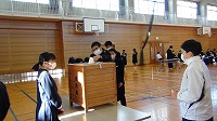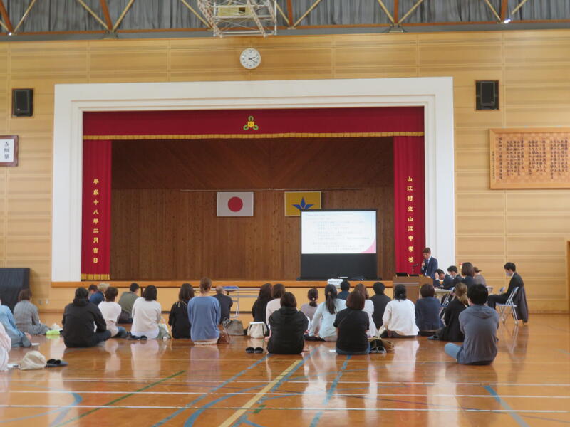 避難訓練(水防)を行いました。前村先生から風水害から身を守るためにどう行動すべきかの説明があり、その後避難所運営ゲームを通して、地域の一員として自分たちにできることを考えました。