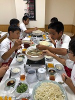修学旅行⑩ ホテルで夕食 投稿日時 : 2019/09/25 校長 カテゴリ:修学旅行 19:00 夕食の時間です。 1日目の夕食は、お鍋でした。 熱くて汗をかきながら美味しくいただきました。 Tweet
